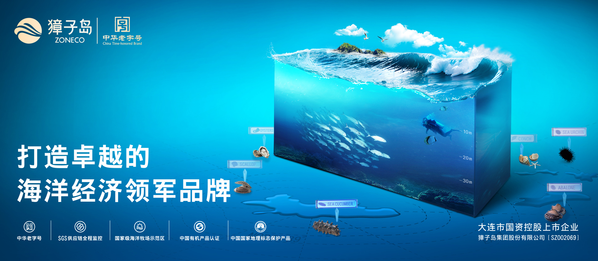 獐子島集團股份有限公司(ZONECO)始創于1958年,是農業產業化國家重點龍頭企業、國家高新技術企業、國家級企業技術中心、國家級海洋牧場示范區、國家知識產權示范企業,全國首個“碳減排”標識企業。公司于2006年在深交所上市(股票代碼002069)。2022年,獐子島集團成為大連市國資控股企業。
